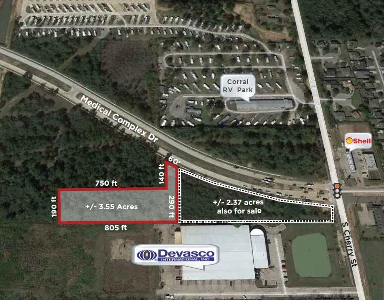The adjoining +/- 2.37 acres is also available for sale which would provide another 750ft frontage on Medical Complex Dr going all the way to the signalized corner of Cherry St as well as a small amount of frontage on Cherry St itself.