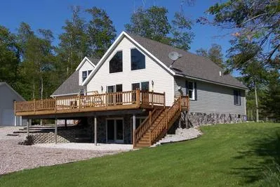 This spacious waterfront home on Munuscong Bay has it all! Large detached workshop/garage, attached garage, cathedral ceilings, modern floor plan, master suite, 'mother-in law' wing on the second floor, huge walkout basement family room with workout room and more! Hunting and fishing right in the front yard. Additional acreage available, contact listing office for more information.