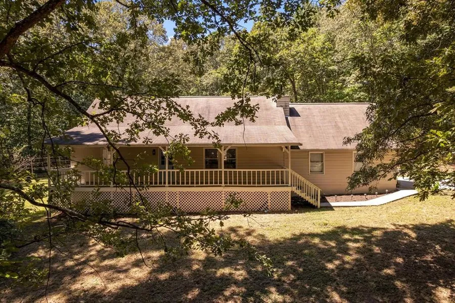 Welcome to your private retreat! Nestled on 3.60 secluded acres, this charming home offers peaceful living with plenty of space inside and out. A rocking chair front porch invites you to relax and enjoy the serene setting. Step inside to an open concept floor plan featuring a cozy den with vaulted ceilings, exposed beams, and a stunning rock fireplace with wood stove. The kitchen is equipped with a new dishwasher and new microwave, perfect for everyday living and entertaining. Two bedrooms and a full bathroom are located on the main floor, while the loft-style master suite offers privacy with its own full bathroom and walk-in shower. Enjoy outdoor living at its best with a screened porch overlooking the backyard oasis.