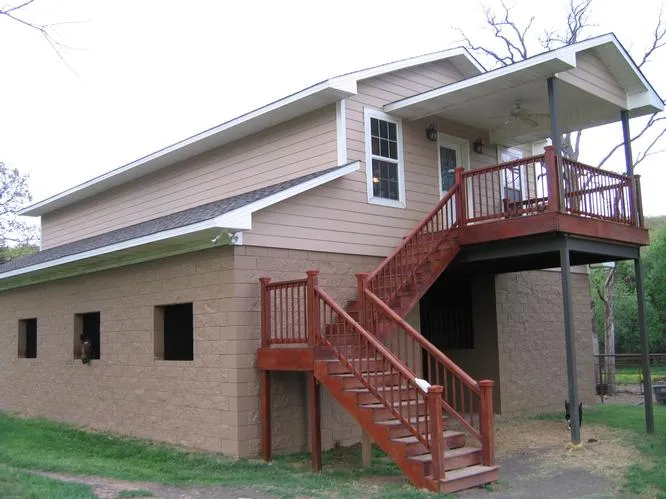 PRICE REDUCED.....GOT HORSES,,, YOU'LL LOVE THIS. 3 PLUS ACRES WITH LIVING QUARTERS ABOVE TOP OF THE LINE 7 STALL HORSE BARN PLUS TACK ROOM/ STORM ROOM. LIVING QUARTERS HAS OPEN FLOOR PLAN. APPLIANCES CONVEY WITH PROPERTY. HEAVY DUTY STEEL STALL DOORS, AUTOMATIC WATERS. NICE OUTDOOR ARENA AND ROUND PEN. TURN OUT PENS. PIPE FENCING. BEAUTIFUL VIEWS AND PRIVACY. WASH BAY WITH HOT/COLD WATER. ROOF ON GARAGE AND BARN REDONE IN '07. FOUNDATION ON HOME & BARN IS 3 FEET DEEP. PERFECT PLACE FOR ROPER OR BARREL RACER. QUALITY BUILT BARN AND HOME.