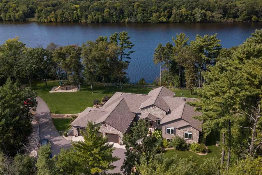 Extraordinary 2011 custom built executive home situated on 3.66 private acres with over 600 of premier Wisconsin River frontage. Sprawling 6 bedroom, 6 bathroom home located in the Town Of Saratoga and within minutes of the world renowned Sand Valley Golf Course. Over 3500 square feet of main floor living space with 10 ceilings, cherry finished custom cabinetry and trim, gigantic great room with floor to ceiling stone fireplace and soaring vaulted ceiling, 100 retractable theater screen with entertainment system, remote controlled power blinds, and all granite window sills throughout. Chefs dream kitchen designed for entertaining includes a massive 6x11 granite island with seating for 6, KitchenAid Stainless appliances, beautiful custom stone clad arch that freely flows into the ample sized dining room, and large windows providing you with breathtaking views of the Wisconsin River. The Master Bedroom offers tray ceilings, gigantic walk-in closet, separate dual vanities, custom tiled shower fit for a king, and whirlpool soaking tub. A second ensuite with large walk-in closet, and two other guest rooms with jack and jill bathroom complete the main floor. The lower level with walkout offers 2 more guest suites with full bathrooms, two plus sized family rooms, a climate controlled Browning gun vault, cedar clad spa room(currently used as an office), and ample storage, all accessible by two separate staircases. The homes heating and cooling system is perfectly regulated by the use of multiple HVAC zones, and the entire lower level, master bathroom, and oversized 3 stall garage have hydronic in-floor heat! Outside you will be blown away by the multiple masterfully designed patios and 11x40 TREX deck, perfect for unwinding and enjoying all of beautiful Wisconsin has to offer. Forget about the stress of the public boat launch, as this estate is complete with its own private launch. This home is truly remarkable and offered at a fraction of the cost it would be to duplicate it. Call today for your private showing! All Buyers to provide proof of funds or pre-approval prior to showings.