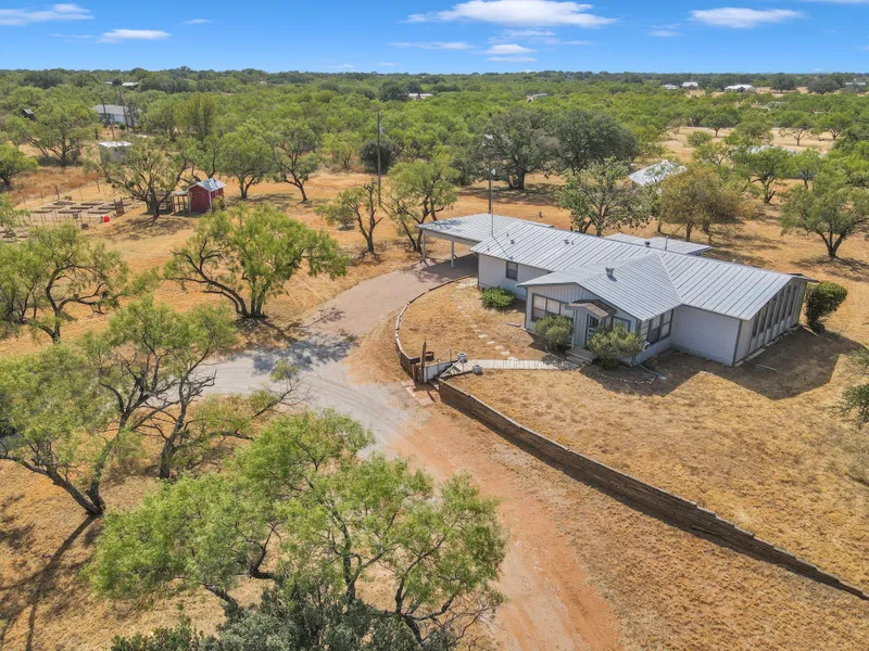 MORE ACREAGE AVAILABLE! Located ~4 miles southwest downtown Llano, ~40 miles from Fredricksburg and ~76 miles from Austin, this residential 3.69 acre property is rich in opportunity for any homestead buyer or investor in the growing Llano area. With approximately 350' of paved road frontage, this location makes for an easy commute to TX-16, downtown Llano and Llano High School (~3 miles away). As you pull off of E. Flag Creek Ranch Road, you enter a circle drive that leads to the residence. You are also greeted with a nice cactus arrangement in the center of the circle drive. Off of the driveway, there is a walkway through a wood retaining wall that leads to the enclosed front porch and a path to the two-car covered carport.