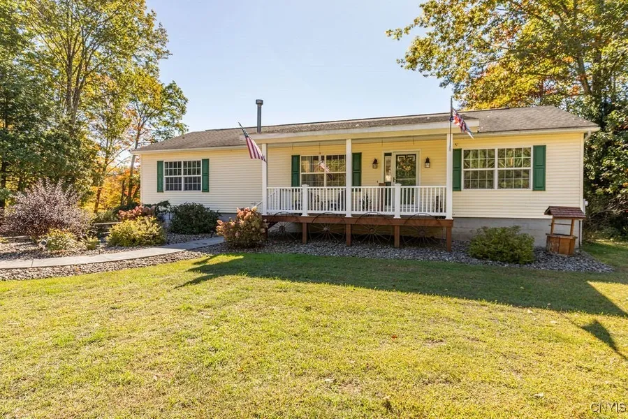 Welcome to serene country living in this 3-BEDROOM, 2-BATH RANCH nestled on over 3 acres along scenic SCRIBA CREEK. Enjoy peace and privacy in a beautiful wooded setting with a HUGE DECK perfect for entertaining or relaxing outdoors. This home features a SPACIOUS PRIMARY SUITE, cozy family room with a GAS FIREPLACE, and extra living space in the PARTIALLY FINISHED BASEMENT. ENERGY-EFFICIENT SOLAR PANELS and a 1 YEAR OLD PROPANE BOILER provide comfort and savings. Additional highlights include a 4 YEAR OLD HOT WATER HEATER, attached 1 car garage, plus a detached 1 car garage. You'll also love the extra shed for additional storage. Plus, an ABOVE-GROUND POOL and gorgeous landscaping—everything you need for country living at its best! WELCOME HOME!
