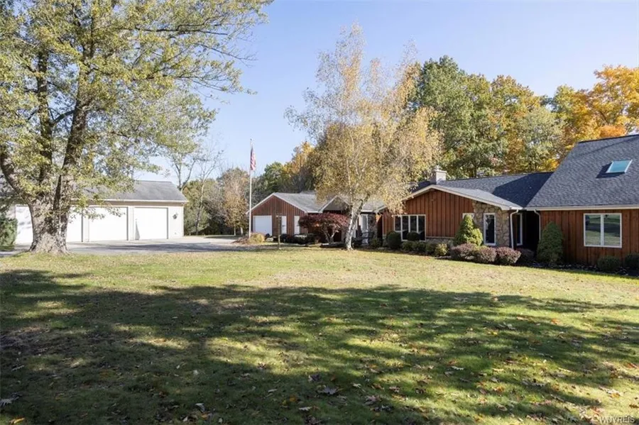 Absolutely stunning, meticulous, ONE OF A KIND property on 3.7 acres. Sprawling ranch with views galore, overlooking your own pond. Kitchen with all the high end appliances and finishes - granite, wide plank wood floors, Wolf, Thermador, Sub-zero. Morning room surrounded by windows on 3 sides and inlaid wood floors. Soaring ceilings in the great room, family room, and primary and second bedroom. Wood burning stove in great room, gas insert fireplace in the dining room. Huge primary bedroom with unique loft, large jacuzzi tub, a steam shower, and a wrap around deck. Attached garage and separate 3 gar garage that is heated, has separate electric panel, water, and room for a boat. Updates include, freshly stained cedar exterior, roof and all windows replaced 10 years ago. Do not miss the covered porch, patio, and gazebo just to name a few of the many features!
