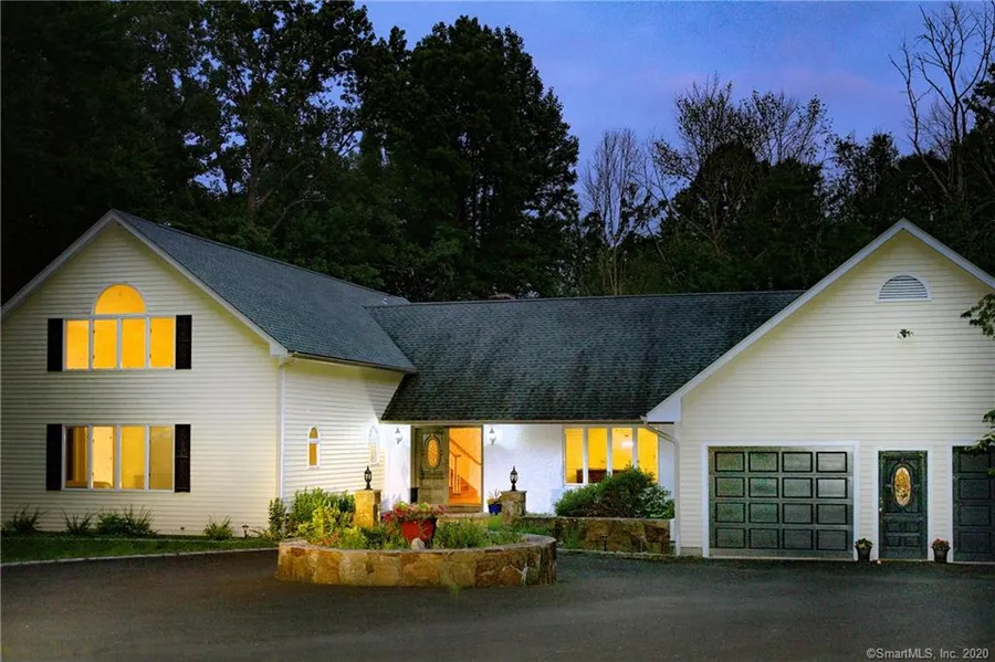 Distinguished by a charming courtyard entryway, this spacious home is set on 3.72 acres in the sought out Aspetuck area; Close enough to mass transit, far enough for quiet enjoyment; 1 hour 20 mins. to Grand Central. The double mahogany doorway is the grand entrance to this elegant home w/ gleaming hardwood floors throughout. The main living area features a vaulted ceiling, floor to ceiling wood burning fireplace, custom Brazilian hardwood mantle. Easy flow to the eat-in kitchen w/ NEW Taj Mahal Quartzite countertops and freshly painted dining room overlooking the front courtyard & the family room with vaulted ceilings and skylights. Connect to nature- large windows drench every room light; step through the sliding glass doors onto the deck in the family room; MBS balcony overlooks the backyard & the front bedroom windows overlook a charming waterfall & koi pond, gazebo in the background. Designed w/ privacy in mind, all 4 spacious bedrooms are on the left side of the house, including 2 master suites on the first floor and laundry area. Updates include a NEW Luxurious Rain Shower and Granite countertops in both MBS and NEW sinks and Kohler fixtures. Stay at home, the office space is off the kitchen, or go down to an impressive 2000 sq ft. finished basement, w/ stone fireplace, gleaming hardwood floors + walk out sliders + an extra tiled space + possible bedroom or home office + storage. This home boasts comfort, privacy & easy flow for large gatherings & entertainment.
