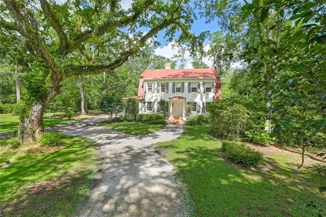 1930s Dutch Colonial on Military Rd with 3.7 acres, landscaped to include 200yr old Oak trees, gardens & fruit trees. Amazing character from Terracotta roof, original Oak floors to the wine cellar. 3 bd, 2 1/2 baths, sunroom, formal living and dining room, fenced courtyard, & 2 car garage. Winding drive brings you to the private courtyard below one of the majestic oaks. River access to the Little Bogue Falaya. Whole home generator! Only 3 minutes to downtown Covington. Seller will consider owner financing.