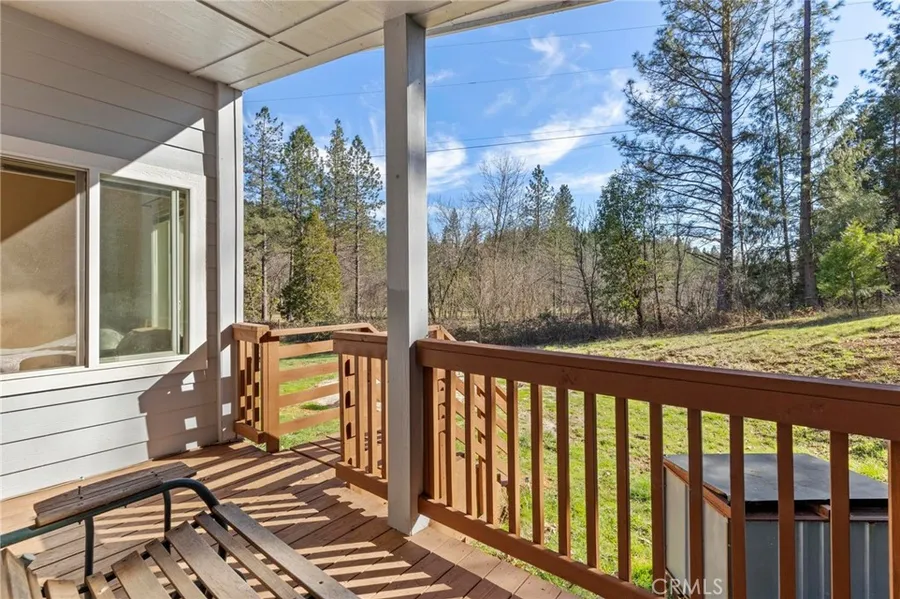 Discover this private mountain property in the heart of Brownsville, located in the scenic Sierra Nevada Foothills. Set against a serene backdrop of towering trees and a year-round creek, this 3.73 acre property boasts ample space for exploration, relaxation, and outdoor recreation. The 2004 manufactured home on a permanent foundation offers 3 bedrooms, 2 full bathrooms, and a split floor plan with the primary suite on one side for added privacy. The spacious great room opens to a deck, perfect for entertaining or relaxing, and the kitchen features all-white appliances and a walk-in pantry. Modern comforts include central heat & air, an efficient pellet stove, an inside laundry room, and high-speed internet and cell phone reception availability. Additional features include a covered front porch, bonus room, detached garage, and shed. Enjoy peace of mind with lower fire insurance rates, t...