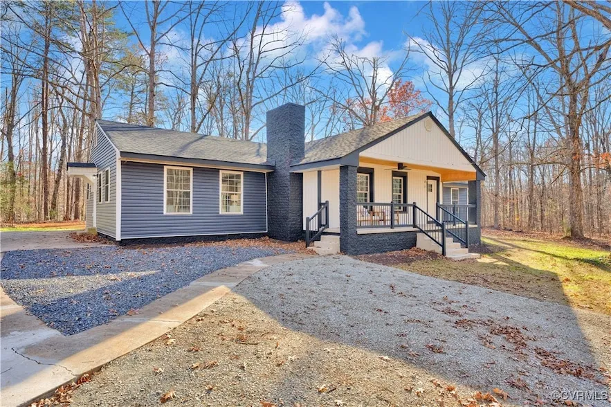 Welcome to 3601 Old Buckingham Rd in Powhatan County! Here is an UPDATED 5 bed, 3 full bath, 2,196 sq ft Ranch style home on a 3.75 acre lot that offers COMPLETE WOODED PRIVACY and is a PEACEFUL OASIS for the hustle and bustle of your day-to-day living! Drive down the re-graded & re-graveled private S-turn driveway and you are met by the open lot nestled in wooded privacy, the modernized front elevation of the home from the NEW vinyl siding, Newly concreted sidewalk/front porch/stairs, NEW 30 year Dimensional Shingle roof, and NEWER vinyl energy efficient windows. Enter the home and you will find a FRESHLY PAINTED interior throughout, NEW Luxury Vinyl Plank flooring throughout, and a wide-open concept living room that features crown moulding, vaulted ceilings, 2 NEW lighted ceiling fans, a stacked stone brick fireplace w/ custom cedar mantle, & a custom barn door that opens to the foyer coat closet. Next is the eat-in kitchen that has room bar seating at the spacious peninsula, NEW Samsung stainless steel appliances, NEW Quartz countertops, NEW soft-close White Shaker cabinetry w/ brushed gold finishes, recessed lighting, & the dedicated laundry room close by. Enter the french doors and you will enter the Primary bedroom with beamed ceiling, recessed lights, private exterior access door (that offers the possibility for an in-law suite), walk-in closet, & an updated en-suite bath that has a new double vanity and floor to ceiling tiled shower. Off of the back of the kitchen is a flex room/family room that has new windows, tons of natural lighting, recessed lighting, and exterior access door. On the adjacent wing of the home you will find 4 spacious bedrooms that all have lighted ceiling fans, fresh paint, and sizable closets. One of the bedrooms has 2 closets and an en-suite full bathroom with shower. Lastly, there is an updated full hall bath with shower/tub and tile surround, new vanity, and a linen closet. Welcome home!