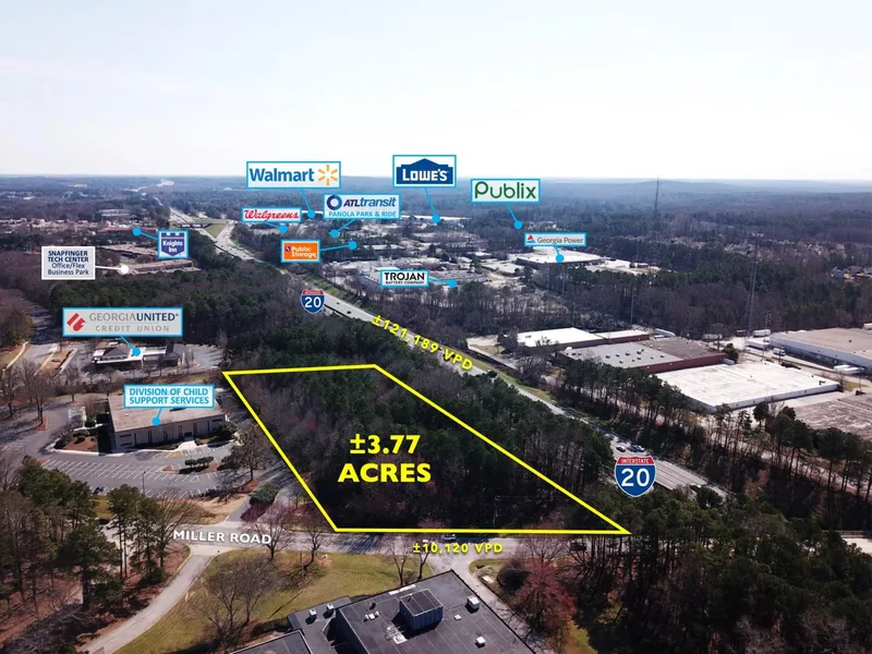The Property is an undeveloped, vacant parcel with infrastructure available including curb/gutter/sidewalk, electricity, gas, sewer/water, etc. This Property offers potential investors the ability to acquire raw land with significant value-add through development and long-term lease-up. The Property is zoned OI, Office-Institutional, and offers favorable flexible zoning that allows for a variety of uses that are necessary for the residents and business and professional practitioners within the county. The Property is positioned on a corner lot adjacent to Georgia United Credit Union and the Division of Child Support Services. The Property benefits from excellent visibility in a high traffic area with direct frontage on Miller Rd and adjacent to the East Exwy/I-20 with 121,189 VPD.
