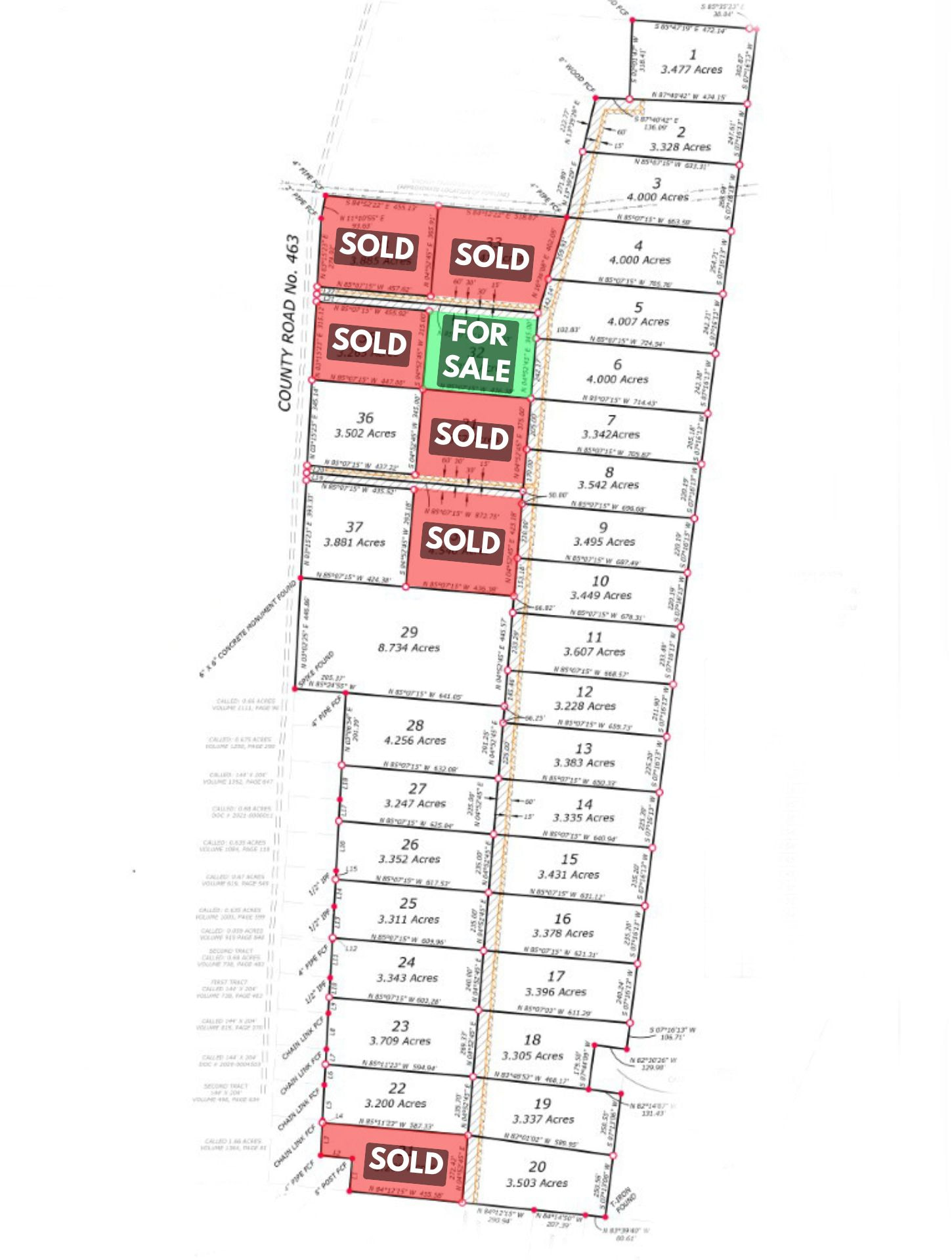 To visit this 3.77 Acres Ranch Land in Limestone TX, search Limestone County Road 463, Mexia, Texas, 76667 within Limestone County on any mapping app. When you are near the land, search 31.64236, -96.51905 on mapping app to locate one of the corners.