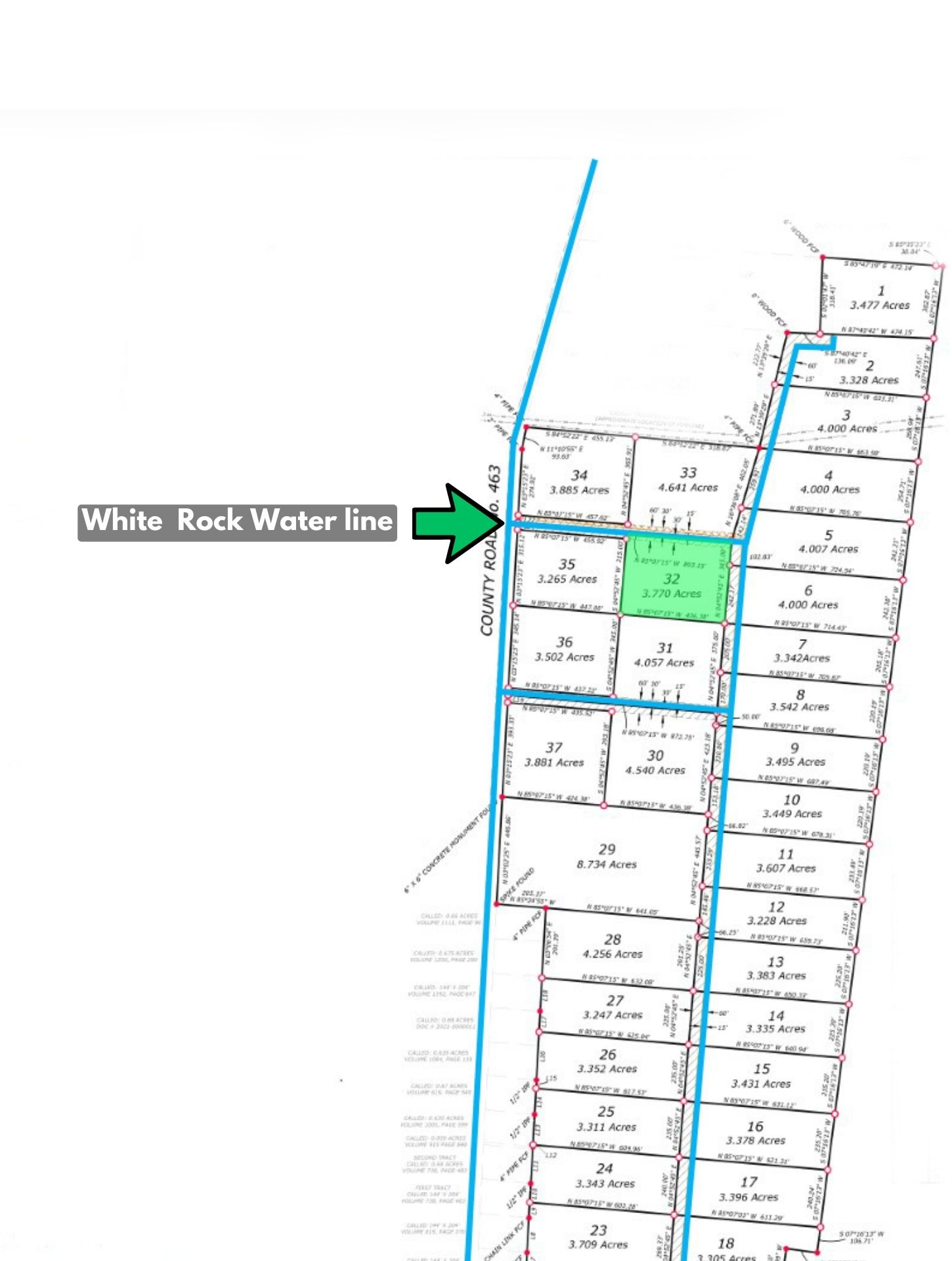 Call White Rock Water Supply (254) 562-6153). Water Lines and Meters are being planned and will go out for bidding shortly. Access runs along the private road. Meter Tap fees are only $750 plus any minor connection and connection fees for new property owners.