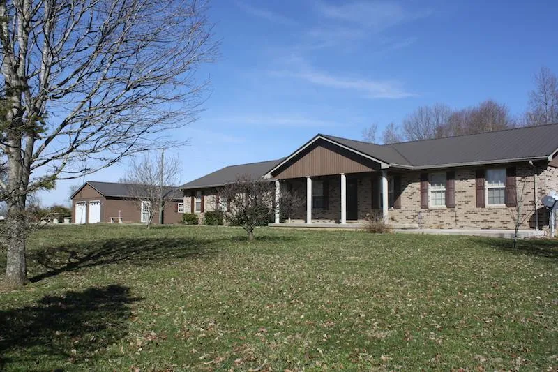 This beautiful brick home sits on 3.77 acres m/l with a large covered deck that offers an absolutely peaceful view. This property has a large blacktop driveway in the front and rear, has an attached and detached garage, central heat and air, plus a full walk out basement that is partially finished. The front entrance of this home has a foyer with the option to go into the carpeted living room or a large den area with laminate flooring. The den area provides access to the outside covered deck and the deck provides a way to the lower level. The main level offers a beautiful kitchen with plenty of cabinet space, a breakfast nook, and an island that provides additional counter space. The home also has a formal dining room and 3 bedrooms on the main floor. Two of the bedrooms are connected to a Jack-and-Jill style bathroom. The master bedroom has laminate flooring with an attached master bath. The master bathroom has two sinks, a tub/shower combination as well as a closet with shelves. This home also offers a spacious laundry room with many cabinets, a sink, a hidden wall ironing board and plenty of counter space on the main level. The basement offers an inside carpeted entrance as well as an outside entrance from the blacktop driveway. Included in the finished portion of the basement is a kitchen with generous cabinet space and tile flooring, 2 bathrooms and 2 additional rooms. The unfinished portion of the basement provides ample space for storage. There is also a 28 x 40 detached garage on a concrete slab with electric, vinyl siding and a metal roof. This property is located minutes away from Russell Springs, Jamestown and the beautiful Lake Cumberland with boat ramp nearby! This is a MUST SEE!!