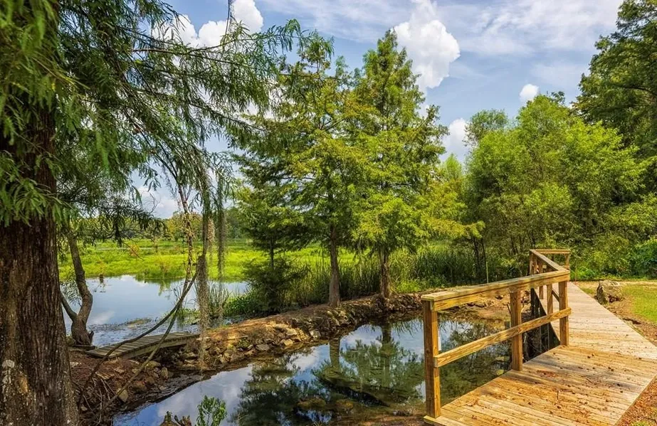 Rustic Elegance & Modern Comforts makes this the perfect personal or business rental retreat. This stunning estate, originally built in 1964 by the owners Grandfather and renovated in 2020, offers 3.80 acres and 360 feet of serene Spring Creek frontage, complete with the only private dock on the creek, making it a rare find for those seeking both tranquility and exclusivity. As you approach the lodge, the grand exterior welcomes you with its stately columns and a timeless brick faade, perfectly blending traditional architecture with contemporary updates. The expansive balcony, a highlight of the home, offers panoramic views of the lush surroundings and the gentle waters of Spring Creek, providing a peaceful retreat to enjoy your morning coffee or evening sunsets. Inside, the lodge features 4 spacious bedrooms and 4 luxurious bathrooms, all designed with comfort and style in mind. The living area are characterized by soaring, exposed wooden beams that add warmth and character, complemented by modern finishes. The open floor plan allows for seamless movement between rooms, with large windows that flood the space with natural light and offer stunning views of the outdoors. So many standout features of this property. The main house screened-in porch, a perfect space for year-round entertaining or simply enjoying the fresh air. The porch is beautifully appointed with a brick floor, ceiling fans, and ample space for dining or lounging, making it an ideal spot to gather with family and friends. The rustic elegance of the lodge is further highlighted by unique details such as the striking antler chandeliers hand made by the original owner which adds a touch of natural artistry to the interior. This blend of rustic and modern elements is carried throughout the home, creating a cohesive and inviting atmosphere. Outside, the property continues to impress with a covered outdoor cookhouse/pavilion that provides a perfect setting for sunsets and sharing tall fishing tales.