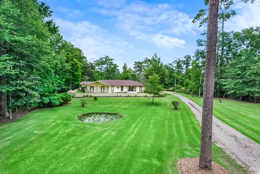 Deep water with several hundred feet of frontage on Bayou. Just minutes by boat to Lake Ponchatrain. Inlet allows for multi boat parking. 3.8 acres with nice hardwood trees and gorgeous view. 2650 sq. ft. one level home with 4 or 5 bedrooms. 3 full baths - 1 opens out to inground pool and large patio area. Ceramic tile in all rooms. Lots of windows with great views. Dock, pilings from old boat house that could possibly be rebuilt. 13' x 20' detached building that could be converted to guest house.