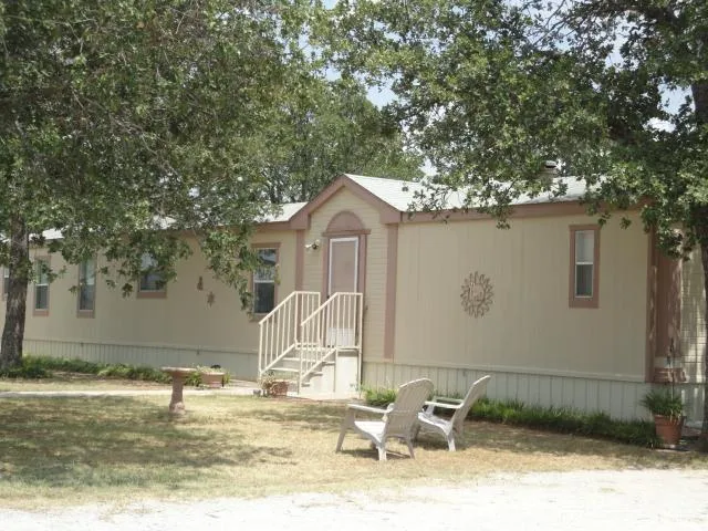 Extra nice three (3) bedroom, two (2) bath, 1992 Oak Park mobile home situated on 3.823 acres, m/l; Scattered with multiple fruit trees and berry vines; A spacious, open concept living room with a vaulted ceiling adjoins a large kitchen featuring ample counter workspace, cabinets, a built-in dishwasher and an island enclosed electric cooktop, covered with a vent-a-hood; The dining area is surrounded by a bay window and a built-in hutch; Split bedroom arrangement; The master bedroom has an ensuite bath featureing a step-up tub, walk-in shower, separate vanities and a commode; Two (2) other bedrooms share a full bathroom; CH/A and hot water heater (gas); The utility room is located next to the kitchen, has room for a freezer and has a door that exits outside to a fantastic, covered patio that features a panoramic view of the Brazos River Valley; A pergola has a garden swing located next to...