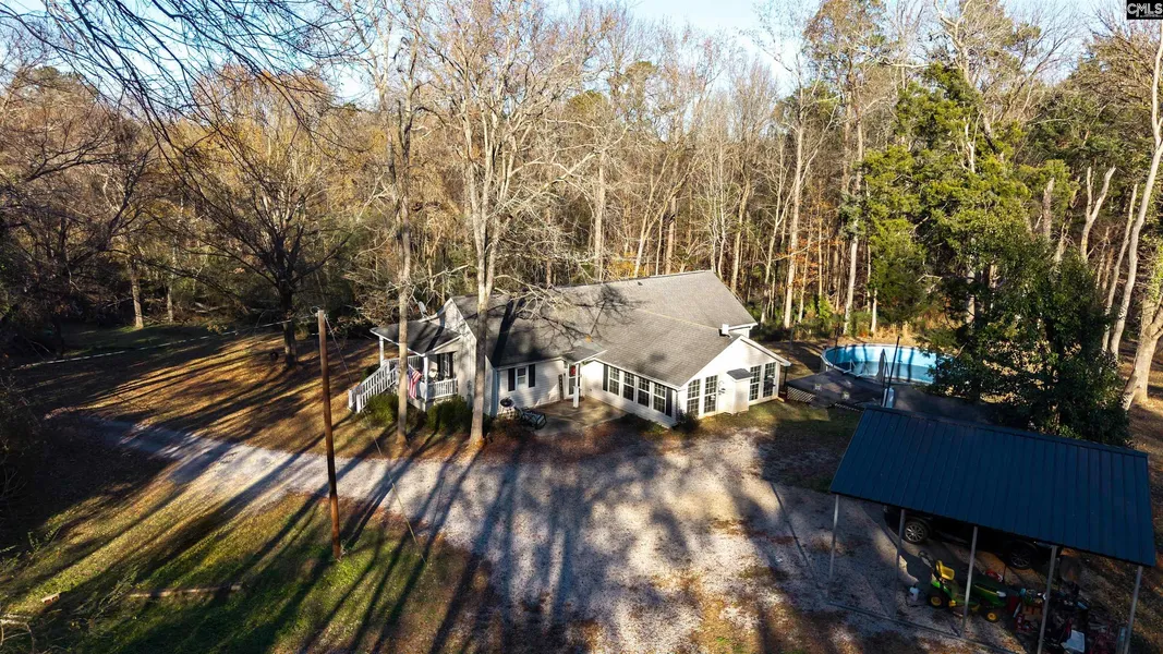 Cozy farmhouse situated on 3.78 acres in Little Mountain, SC. Features a large living room with fireplace, LVP flooring in living room and kitchen, and an open floor plan leading to a remodeled kitchen with pantry. Formal dining room and large windows provide beautiful views of the property. Enjoy outdoor living with a front porch, sun deck, above-ground pool, and tire swing. Basement offers additional space. Property includes an additional older farmhouse at the rear, offering great potential. Spacious acreage with endless possibilities. Disclaimer: CMLS has not reviewed and, therefore, does not endorse vendors who may appear in listings.