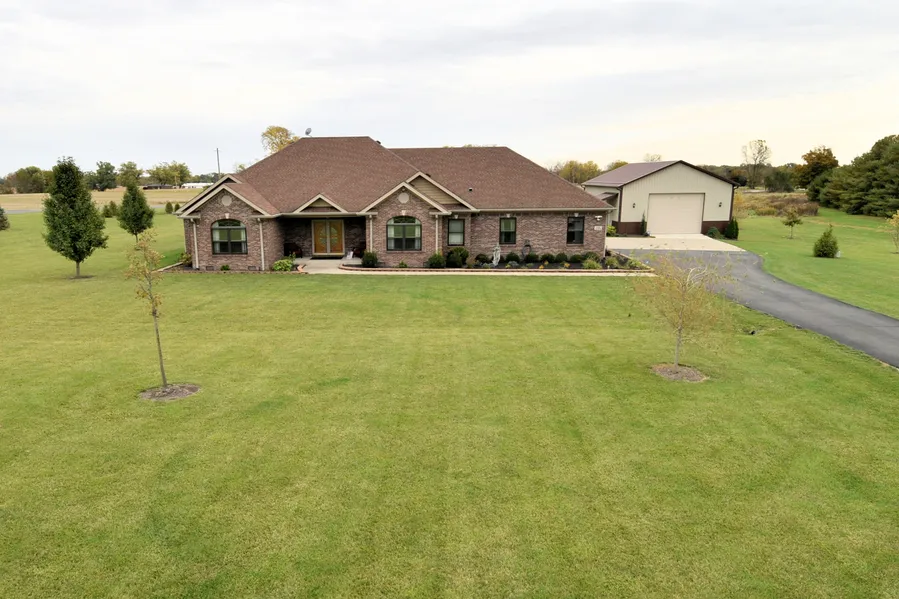 Custom Brick 4 B/R, 2.5 Bath Split Bedroom Home Sitting On Nearly 4 Acres. Pole Barn Is 32'x48' And Features A 12' High Overhead Door, Insulated & Heated. The Kitchen Offers So Much Seating At The Breakfast Bar & Also Features A Center Island, Stainless Steel Gas Range, Vented Hood & Built In Fridge With Granite Counters & Glass Tile Backsplash. Master Bath Has An Incredible Walk In Custom Shower & Double Sinks With Quartz Counter. Master B/R Has His & Her Walk In Closets. Beautiful Wood Floors In Entry, Dining, Great Rm, Sunroom, Breakfast Room & Halls. All Bathrooms Have Tile Floors & Granite Counters. Custom Wood Trim & Crown Moulding Throughout With Solid Wood Doors. 900 Sq Ft Covered Patio Perfect For Entertaining.