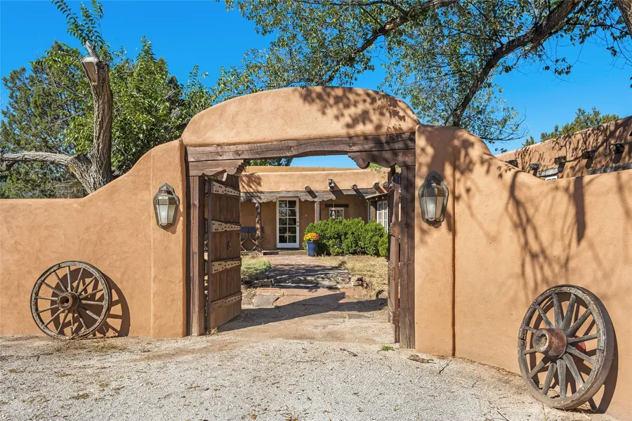 This is The Real. Authentic and charming adobe on 4 acres of Heaven, New Mexico, yet only 40 minutes to Santa Fe and 30 minutes to Las Vegas. The home is thought to be over 200 years old and comes with all the charm and authentic pueblo style you would expect. Brick and flagstone floors, hand hewn vigas with cedar latillas, plaster walls, and multiple fireplaces. The home sits on a bluff over the Pecos River, and it's rumored to at certain points have been a Stage stop on the Old Santa Fe Trail, and a monks retreat center. If these walls could talk! Next to the home is a large 1,456sf barn/garage which has a full rollup door, concrete flooring and electricity. Fully fenced with 4 wire barbwire and gated at driveway entrance.