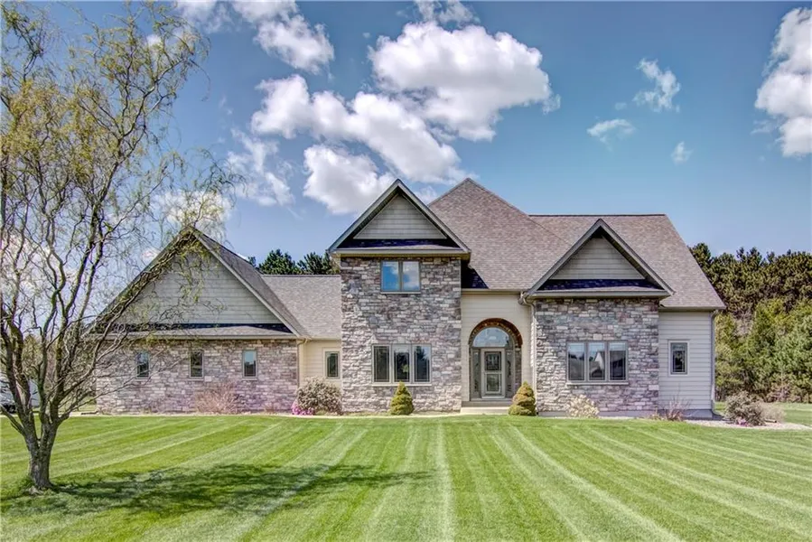Stunning 4 bedroom 4 1/2 bath home located minutes from town in exclusive subdivision. The estate is a masterpiece of design and craftsmanship featuring a gourmet kitchen w/ Cambria counters and luxury built-in appliances, main floor master suite, office, laundry rm, and dining rm. Basement features a theatre room, exercise room, in-floor heat, and more! Additional detached garage and heated shop. Manicured 2 acre lot with additional vacant lot next door. Be sure to see the full amenities list in attachments. Altoona schools.
