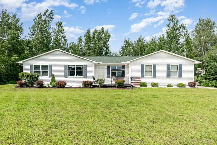 PARADISE ON PRAIRIE ROAD! Feel like you are up north without leaving your backyard! Serenity, Privacy & Relaxation await you in this beautiful updated ranch home with full finished walkout lower level, situated on almost 4 acres with woods and clearing, features an above ground pool and hot tub, with a new trex deck, plus a 24 x 22 Pole Barn/garage built in 2010. Natural light floods the large living room featuring new LVP flooring and flows into the dining room and kitchen both with gleaming wood floors. This stunning ranch home boasts over 3200 sq ft of living space, 6 bedrooms, 3 full baths including a stunning master suite with soaking tub & separate walk-in shower. Family room located in the lower level features sliders leading to the patio. Updates continue with roof 2017, Viessmann Combo Boiler 2021 and on demand hot water heater 2021. Efficiently and economically cool the home w...