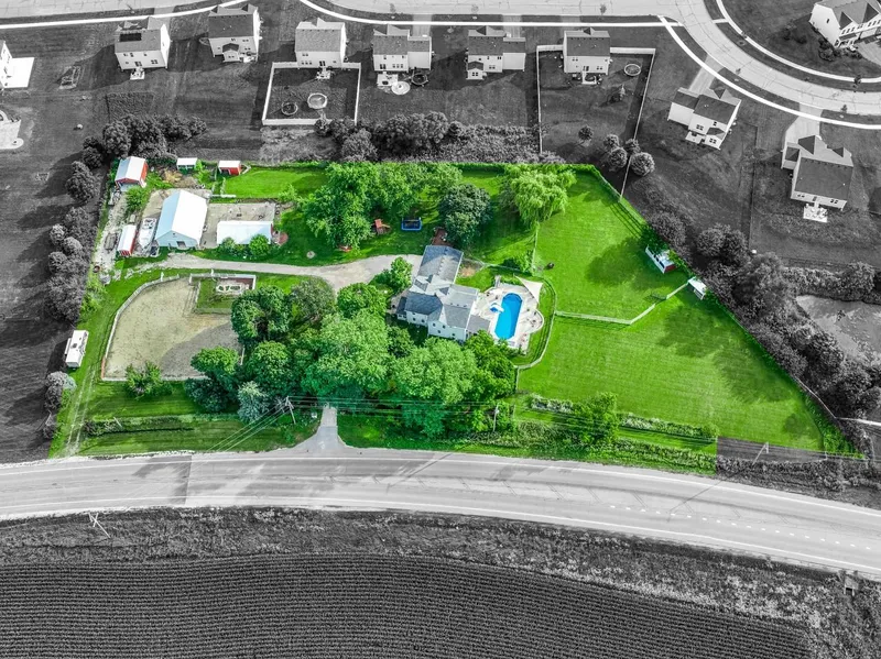 3 ACRE FARMETTE - JUST OUTSIDE OF YORKVILLE on NATURAL GAS! UPDATED FARMHOUSE with MULTIPLE OUTBUILDINGS including HORSE BARN, FINISHED PARTY BARN, 2-CAR DETACHED GARAGE AND CHICKEN COOP plus MULTIPLE LEAN-TO'S. The home is approximately 3,580 Sq Ft with 5 Bedrooms and 3 Baths. It has been remodeled to give you the Open Concept and features an UPDATED KITCHEN with STAINLESS STEEL APPLIANCES, double oven, GRANITE COUNTERS, indoor grill and Walk-In-Pantry. 1st Floor Bedroom with Full Bath and 1st Floor Laundry / Mud Room with Dog Wash. 2 Furnaces and 2 Air Conditioners. IN-GROUND SALTWATER POOL; Screened-In back patio, Outside Grill. GREAT USE OF SPACE! 2 Paddocks, 2 Pastures and a sand Outdoor Arena (Board and wire fencing). HORSE BARN is 32x40 and features 6 Stalls, Tack Room, Feed Room, Hay Loft and Electric. Water hydrant is just outside. FINISHED OUTBUILDING is 40 x 18, Cinderblock with a Tin Roof, concrete floor with epoxy finish, heat and electric. DETACHED 2-CAR GARAGE is 20x24 with concrete floor (needs garage door). CHICKEN COOP is 10 x 25. There are 5 RUN-IN SHEDS; the largest one is 12X24 and can serve as 2 Outdoor Stalls (not enclosed on one side); four are 16x8 (one needs work). Horseshoe shaped driveway for easy in and out with trailers. APPROXIMATELY $40,000 in updates since 2020: Hardwood Floors sanded and refinished; Carpet, Paint Interior, Pool Cover, Finished the Outbuilding, Sand in Outdoor Arena, Improved Fencing & Painted, Concrete Floor in the 2nd Garage, Carbon Filter. Sells "As-Is". Zoned A-1; Agricultural.