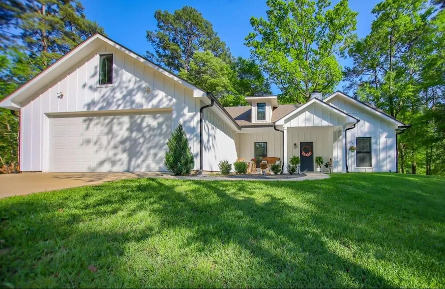 Whether you want to catch bass from the bank or beach your boat & come in for lunch, this luxurious home on 3 beautifully manicured waterfront acres in a gated subdivision on Lake Sam Rayburn is THE ONE! Large covered front porch welcomes you into this open & airy 3BR/2.5BA split floor plan w/pristine stained concrete floors, woodburning fireplace, built-ins, contemporary lighting, & breathtaking views of the lake through the dbl French doors. The island kitchen has granite countertops, stainless appliances, walk-in pantry, & upscale fixtures. The master suite is the place to relax w/great views, oversized soaking tub, walk-in shower, granite counters w/dbl sinks, sep potty closet, & huge walk in closet. The 2 add'l bedrooms are bright w/large closets & beautiful views. 2nd bath w/granite counters & custom tub/shower. Lg covered back patio, built-in generator, covered boat storage, firep...