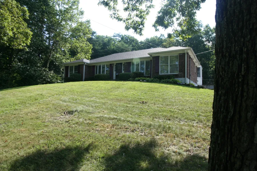 Country Living at Its Finest! All Brick Walk-Out Ranch Style Home on a 3-acre wooded lot! The 6 x 12 entry foyer welcomes you to this 3 bedrooms, 2 full bath home. Offers a large country kitchen with white cabinets and breakfast nook with bay window, adjacent formal dining room, large formal living room huge family room with brick fireplace. The Primary bedroom has two double closets and full bath. The basement offers a second family room with a brick fireplace with a wood burning insert. The garage runs the full length of the house and can hold up to 4 cars. 14 x 26 deck and a 52 x 30 aboveground pool. 12 x 15 patio. New Roof!