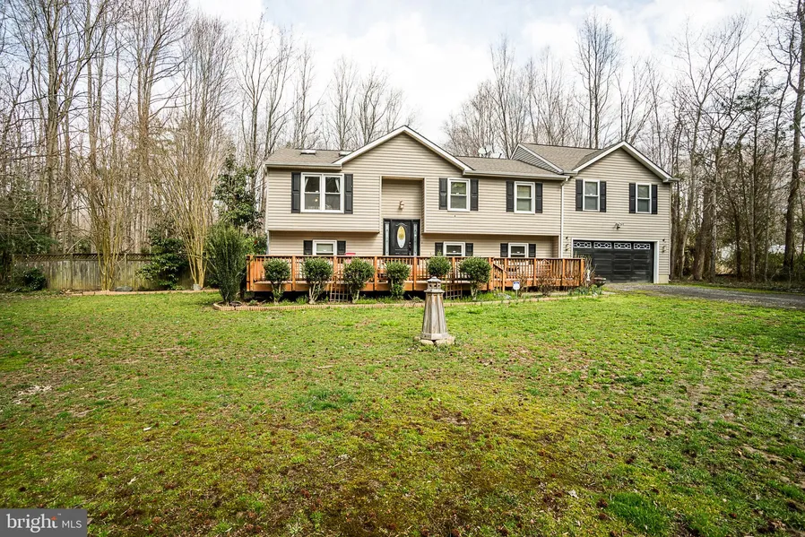 Welcome Home! This lovely and large split foyer home has 5 bedrooms and 3 full baths. How about you start off your new homeownership with a family/friends gathering/BBQ and relaxing on this huge deck and soak in the peace and quiet, sunny morning coffee or the summer evenings, along with the laughter of the kids playing while conversating with the others. Home sits on 3 acres, and backs up to a pond which is ready for your fishing polls, and the trails to be hiked through the woods. Fully finished basement with wet bar. Let's talk space... check out the primary bedroom w/cathedral ceilings, half moon window, your options are endless, plenty of space for your work out needs, sitting area and/or plenty of space for a nursery. Huge primary bath w/separate Shower & tub and skylight. Kitchen has tile backsplash, electric flat top stove less than a year old, natural light from the skylight, shaker style cabinets, breakfast bar, pantry, track lighting & deck/balcony off the dining area. This house has so much to offer, be sure to come out to take a look. House has been professionally cleaned to make it an even smoother transition for your move in. Carpets were also steamed cleaned. Verizon FIOS is available.