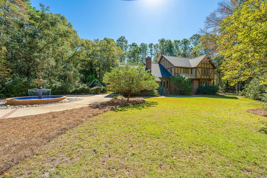 ***$25,000 Price Adjustment***Don't miss this truly unique opportunity to own a charming, immaculately-kept 5-bedroom, 4-bathroom Tudor home situated on an expansive 3-acre private property. Located in the coveted Hamlet Community of Hollywood, this estate offers a rare blend of stately tradition and investment potential. Step inside this two-story home to find a warm, traditional interior designed for both grand entertaining and comfortable family life. An elegant foyer featuring a gorgeous, sweeping staircase introduces the bright formal living room and the sophisticated formal dining room, which features classic chair railing and wainscoting. The huge eat-in kitchen is the heart of the home, equipped with a large island, stainless steel appliances, abundant cabinetry, and ample counter space, all finished with durable tile flooring. From the kitchen sink, you can easily watch your children play in the backyard. For relaxation, the cozy family room features a warm brick fireplace and direct access to a spacious, sunlit screened-in porch. Additionally, a versatile bonus room above the garage is ideal for a media center, playroom, or home gym. The stunning grounds provide exceptional curb appeal and privacy. The grand entrance is marked by a beautiful fountain centerpiece, and the landscape boasts over 100 azalea bushes that burst with colorful blooms every spring. Outside, you can entertain or relax on the back deck while enjoying the natural surroundings, including a wooded barrier at the rear that ensures extra privacy. As a resident of The Hamlet, you will also have access to exclusive community amenities, including a play park, tennis court, and a serene fish stocked lake area complete with a dock, pier, boat landing and a covered space for lakeside gatherings. Finally, for an effortless transition, the majority of the beautiful furniture is negotiable and can convey with the sale.