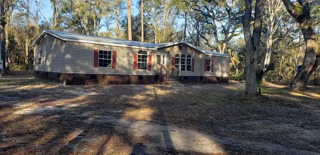 Immaculate! Like New! Gorgeous 3 BR 2 bath DWMH situated on a partially cleared, fenced/gated 3 acres on a paved street. Home features room galore! Large living area with wood fireplace (never used), kitchen boasts lots of cabinet/counter space with NEW SS appliances (1 mo.), new kitchen sink/faucet, island bar, breakfast bar, enormous laundry room with office space, spacious bedrooms with walkin closets, Huge master BR with large walkin closet, glamorous master bath with bathing tub, seperate walkin shower and new vanity sinks/faucets, new floor coverings. Exterior features New metal detached 20x24 garage/workshop with slab and power, new skirting, new window screens and new metal roof (5 yrs). Want believe it until you see it. Schedule an appt today!