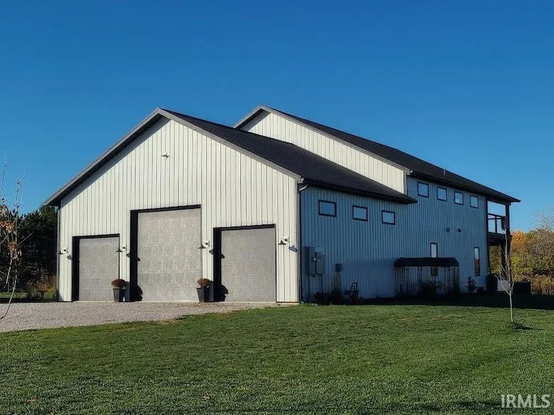 High quality construction pole barn style home new in 2022. Beautiful interior finishes with a great open feel. Enjoy the large kitchen with loads of cabinets, granite tops, stainless steel appliances, undercabinet lighting, open ceiling with wood beams and a walk in pantry. Two bedrooms and one large bath on the main level with open living room overlooking the ground floor 15 x 50 covered porch and pool all with country views of the 3 acre property. Cement floors with radiant heat on the first floor, gas force air on the second floor and central AC throughout. Epic primary suite that encompasses the entire second floor with walk in shower and large walk in closet and has it's own private 15 x 50 covered porch. The main house has an attached 30 x 40 garage including two 12 foot overhead doors and one 14 foot overhead door. The detached 40 x 40 building has an additional 3 car gara...