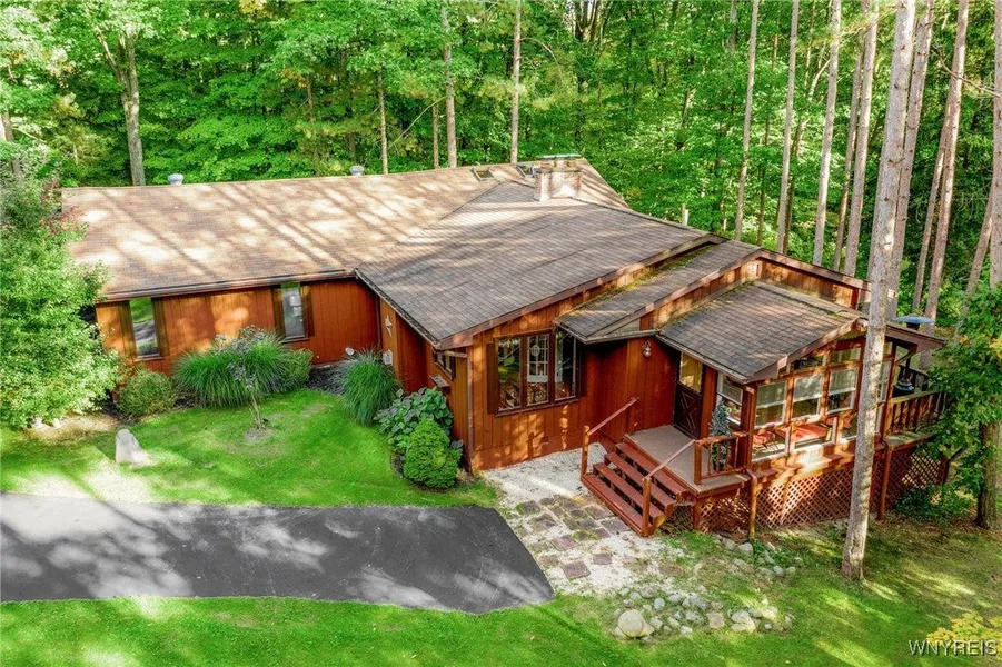 PRICE IMPROVEMENT! One-of-kind beauty nestled in complete serenity & privacy is this stunning 4+bed/3bath custom built hillside ranch on 3acres located in the countryside of OP! Home is set back surrounded by lush lawns & abundance of beautiful trees & backs up to Chestnut Ridge! The gorgeous wrap around deck overlooks backyard oasis! All exquisite upgrades thruout the home is perfect for creating personal needs. Entire main level highlights real hrdwd flrs & has open floor plan w/artisan dream kitchen centering a huge Carrera marble island, built-in Thermador stove w/so many maple wood cabinets. Relax/entertain living rm highlights gorgeous arched wood ceiling/beams & skylights, double doors offers natural light. Formal dining rm w/gas frplc. & sunroom. Large primary bed w/double closets & updated bath w/radiant floor, tiled walls/showers. Other 3 bdrms used for music rm, exercise & sitting room. Lower walk-out level offers many options to personalize inc bdrm, new bath, huge bonus rm w/recessed lite, high-end Pergo for extra living! Updates <10yrs inc kitchen, 2 baths, lower level, deck, HVAC/AC/HWT, windows/doors, electrical & plumbing. Also inc generator & alarm. Low taxes!