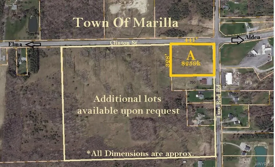 ONLY B1 land available in Town of Marilla MANY opportunities with three commercial lots of varying size Uses possible for business use are: grocery store, meat store, bakery,drugstore, clothing,general merchandise, hardware,appliance restaurant,building supply, farm equipment, eleclrical or plumbing store, and many more uses! LOTS are hypothetical and may be repositioned and boundaries changed by purchaser and/or seller. MORE LAND POSSIBLE