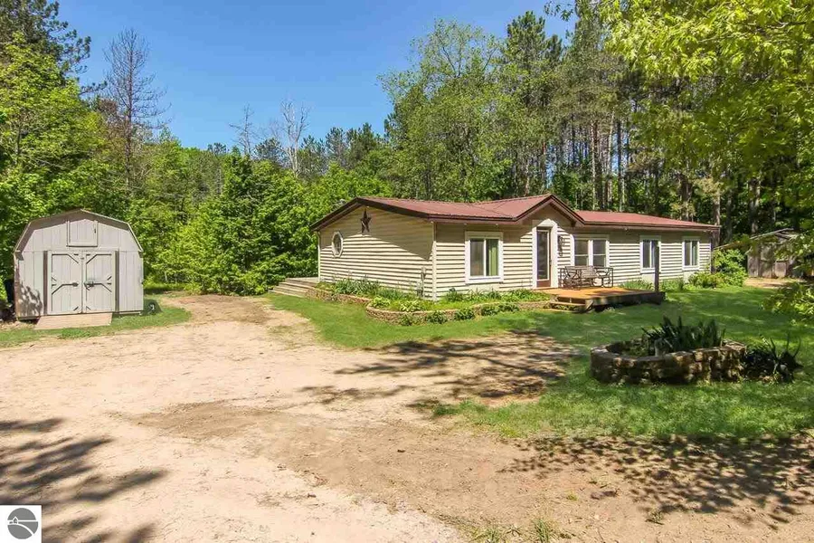 Recently updated home situated on a large three acre wooded parcel adjacent to endless state land recreation opportunities. Setting offers privacy all around and includes frontage on Bissell creek to enjoy right in your backyard. Many recent updates including metal roof, new furnace, updated bath fixtures, vinyl plank flooring and an updated kitchen with hickory cabinetry and stainless steel appliances. Spacious backyard deck is perfect to enjoy the outdoors and taking in all the privacy this setting offers. Two existing garden sheds along with ample space to build a future garage or outbuilding. Location offers easy access to ORV and snowmobile trails, public water access on Elk Lake and East Grand Traverse Bay, hiking trails, VASA trail system along with all the amenities the Traverse City has to offer.