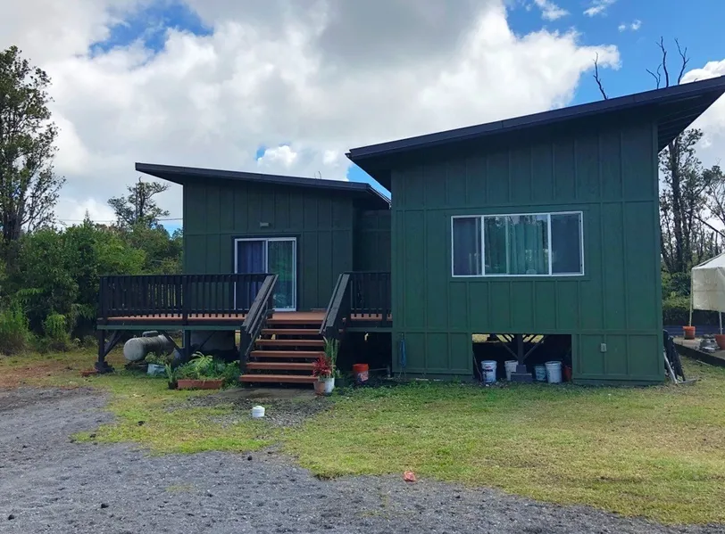 Looking for something unique? This is not your average cookie cutter design. This home has 2,188 square feet of living space. It is comprised of two detached units, each with a bedroom and bath. The ohana is perfect for rental, guests, or extended family. It has 420 feet of wooden decks. This home was built for comfort, and gated for privacy. The home was completed in 2018, and has been carefully maintained. The front unit bedroom is an amazing 16 x 38 ft. It is very spacious, with its own entrances from the front and back decks. Both units feature relaxing soaking tubs, and the front unit also has a walk-in shower. Kitchen is furnished with up-to-date. stainless steel appliances, including a dishwasher. Both bedrooms feature cedar-lined closets to protect your clothing. They started construction of a huge garage/utility room. Concrete slab has been poured and roughed in for water and el...