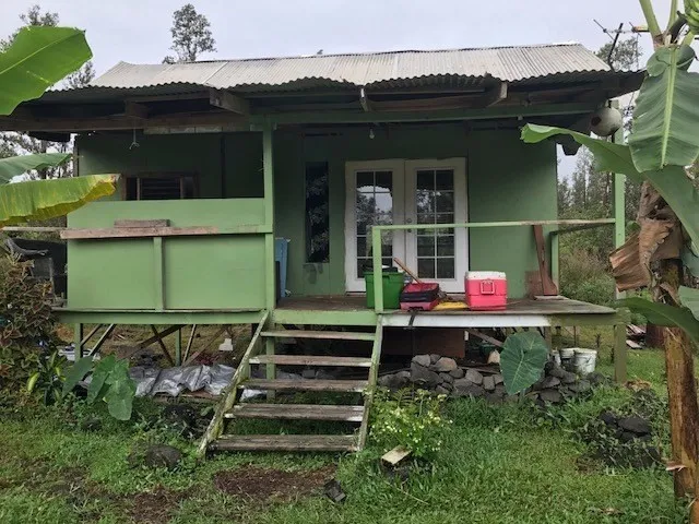 Good start for your cabin in the woods. 24 x 24 ,2 bedrooms and 1 bath, living room, kitchen and intended loft and a 8 x 24 deck. You can see the outline of it all. Seller has a good start on many of the projects, but it does need work and finishing. No water running to the home, no electricity, no cesspool or septic, no bills! Seller used a solar panel that is no longer with the home and a composting toilet, and there is an out house also. The pool is there that was used for water but it is not connected. The yard has a large variety of plants and trees. Young trees include Banana, kukui nut, papaya, orange, tangerine, Mt apple, avocado and more. Some are bearing fruit. Gated entry. Private yet not far from town. No survey or staking at sellers expense, termite inspection and please include AS IS addendum. Truck will be removed but nothing else. Everything else stays.
