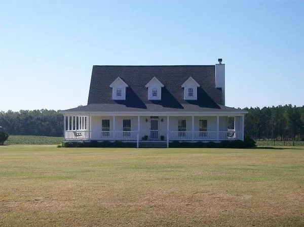 Beautiful country home with 3bd/2.5ba 2 story on 3+ acres of nice landscaped country property. This home has an open floor plan with fireplace in grand room. Master down stairs and 2 bedroom an bath up stairs.Wide plank knotty pine hardwood flooring, baths has ceramic tile and guest bath has a vintage look farm sink. Large kitchen island with cook top and ice maker built in. Porch surrounding 3 sides and large carport. 1200 sq. ft. detached garage with additional 450' game room upstairs with AC.