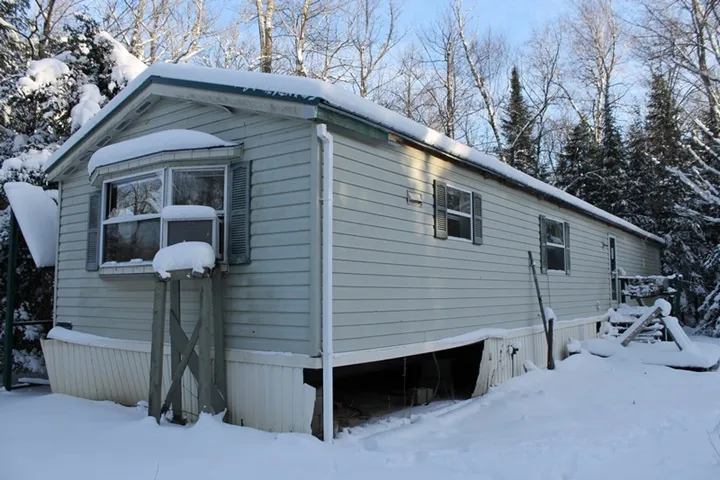 This private property is located on the outskirts of town. There is approx. 2.83 acres of wooded land. On the property is mobile home with 2 bedrooms, 2 baths, large kitchen/living room area and laundry facilities. The kitchen is open to the living room and has plenty of cabinets. The mobile home has 6-inch walls, metal roofing and is well insulated for our type of weather. Also included is a 2- car detached garage. The property needs some attention done to the mobile home and garage. There is year- round access from a town road and immediate access to the snowmobile/ATV trail.