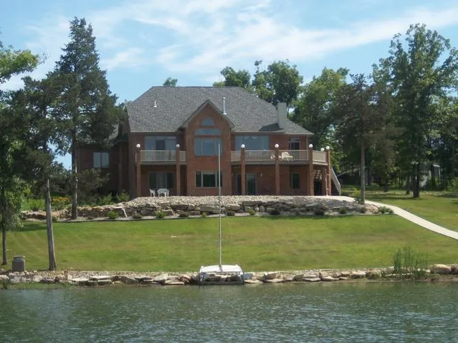 This beautiful home on Crown Lake has an amazing setting in the Ozarks of Arkansas. Completed in 2009, this brick home has approx 2,874 sq.ft between the main level & basement. The home offers 3 bedrooms, 3 baths, and an open living room/dining area/kitchen with lots of windows overlooking the lake. The kitchen has oak cabinets with Quartz countertops, a bar and comes equipped with the stove, refrigerator, dishwasher & microwave. An adjoining dining area/breakfast nook has sliding glass doors that lead out onto a sundeck overlooking the lake. The living room has vaulted ceilings, a large picture window and a gas log fireplace that is double sided into a bonus room that would make a great formal dining room. The master bedroom has a huge walk-in closet & a balcony with a lake view. The master bathroom features a Jacuzzi tub and a big walk-in shower. The basement consists of half being unf...