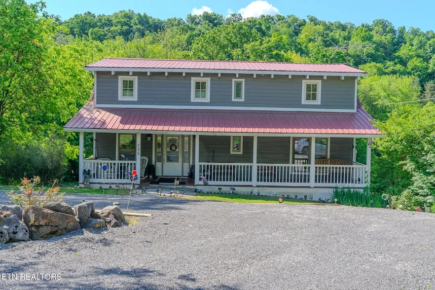 Awesome remodeled home located on 3 acres that are flat, cleared, private, and unrestricted, with a year-round creek, and NO HOA! All stainless steel kitchen appliances, including massive commercial fridge/freezer!This home was remodeled in 2018 with all new kitchen, flooring, electrical and plumbing redone, siding, new metal roof, and so much more!Additional features include a massive amount of parking, storage shed, huge turnaround area and pull-through RV storage and full RV hookups, full length back deck overlooking the gorgeously flat lot and the sights and sounds of the large creek with waterfalls! Make this your private retreat, create an AirBNB at the hookups in the backyard, or build out an RV park!Enjoy all this gorgeous East Tennessee privacy, less than 5 minutes off I-40, with NO restrictions, NO HOA, and low County only taxes!