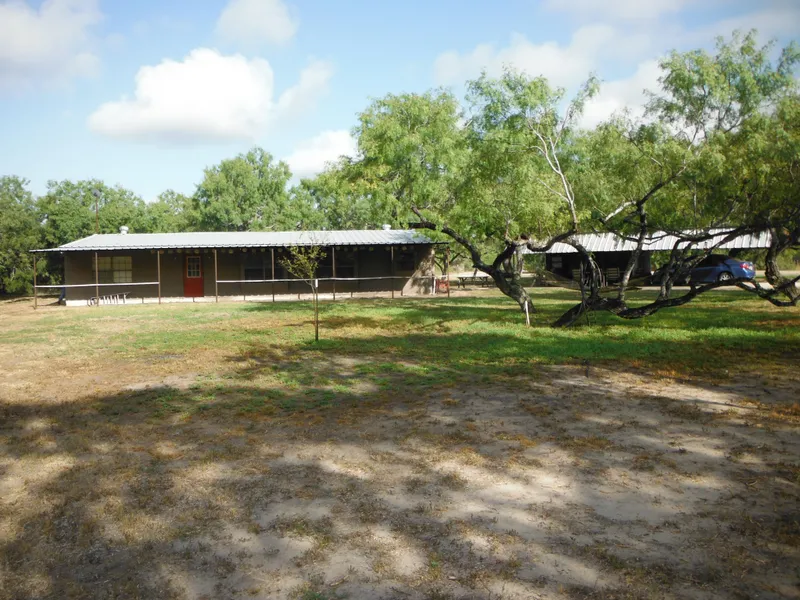 Approximately 2000 square feet slab built concrete home on 3 full acres shaded by huge mature mesquite trees, very peaceful and quiet. Updated kitchen featuring granite and stainless, breakfast bar, dishwasher, disposal, island, pantry, electric range/oven and vent hood. Metal roof. Master freshly painted. Some flooring needed on one end of the home. Carport set up for entertaining. Horses permitted. Orange Grove ISD.