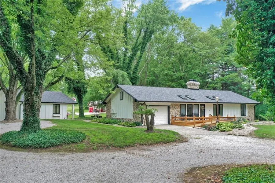 One of the MOST UNIQUE, FUN properties on south side! So many possibilities w this 3 acre property w updated main house, guest house & one-of-a-kind barn! Nature surrounds & is visible from every room in the main house, w new owner's suite, beautiful hw floors, new roof/gutters & fresh exterior paint. Guest house feels like a cabin in the woods, features a kitchenette, 2 large bedrooms, full bath, & loft. Pole barn is completely finished & caters to the car enthusiast! Full workshop, possible office space, along w 2 car lifts make the possibilities for this space endless. All of these features plus 3 acres that take your breath away from the fire pit, multiple porches, fun fountain, and plenty of mature trees. Must see to truly appreciate!