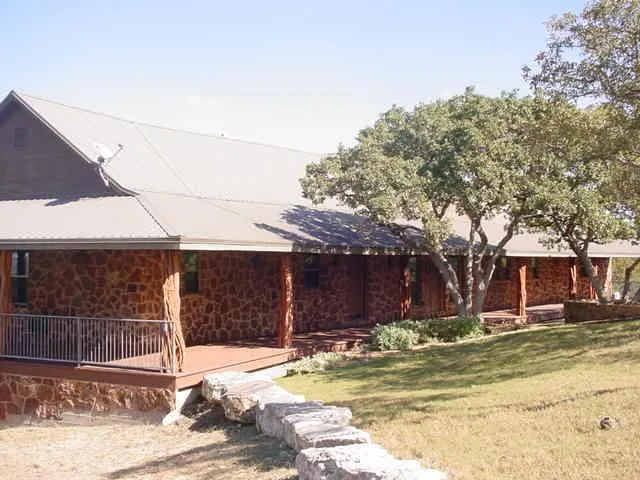 Unique, exceptional Hill Countrty native stone home with fabulous views of Kerrville and the Guadalupe river valley. Massive porch areas with multidirectionl views for evening or morning enjoyment. Exterior constructed of Lampasas limestone. Interior walls Colorado White Aspen throughout. All tile floors. Granite counter tops and gas cooktop in kitchen. Huge mission doors in great room imported from Venezuela. Native stone fireplace in great room. Every room has a breath taking view! Guest house is 41x14 with workshop and carport attached.