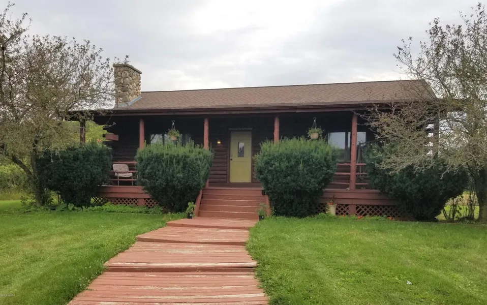 Beautiful log and stone home with 3 acres Don't let the faade fool you, this home has 4 spacious bedrooms, two of which are 16x20, two updated bathrooms, huge basement family room with walkout to the backyard and plenty of deck space,,both covered and uncovered, for outdoor living. The well-appointed kitchen has a center island and beautiful countryside views out of the bay window. The main floor living space has warmth and character with floor to ceiling log walls and beams. There is approximately 400 sq ft in the attic that could easily be converted to a loft or fifth bedroom. If that isn't enough there is 220 service to both the garage and pole barn. Pole barn is equipped for a small business, man cave, or whatever your needs may be with cement floors, insulation, water, natural gas,