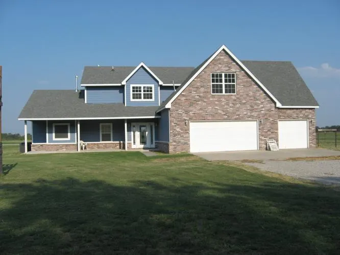 Custom built 3 bedroom, 2.5 bath home with 3 car garage on 3 acres. Located on Haskell Airport. (Additional 55 acres + airport available) Granite Kitchen opens up to living area. Balcony on 2nd floor. Master on level 1 with full bath.