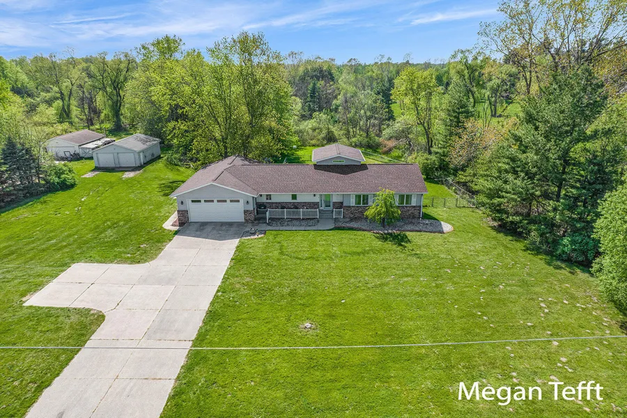 Looking for your own slice of paradise in Coopersville? Look no further than this beautiful 4-bedroom, 2-bathroom Ranch style home on 3 acres of land. Enjoy the peace and tranquility of country living, with the convenience of being just a short drive from Grand Raids or the Lakeshore! Inside, the home boasts a spacious layout with floor to ceiling windows in the living area, great dining space and large kitchen for entertaining! The lower-level features what could be a primary suite with huge bedroom, walk in closet and space and products to finish a full bathroom! There is also a private office with wine storage! Back outside you have a new deck with new concrete patio and outdoor stairs. The views are just breath taking! The bonus 2 stall garage is a great addition for anyone who loves to tinker or needs extra storage space! Don't miss out on this incredible opportunity!
