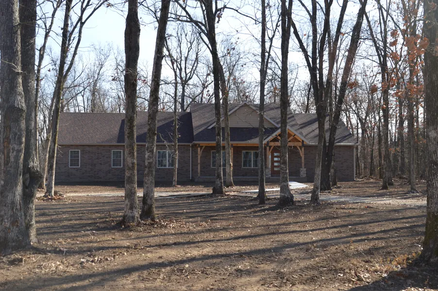 NEW CONSTRUCTION!~ This gorgeous rustic home offers 2300+ square ft., 4 bedrooms and 3 baths. Customs hickory cabinets, granite counter tops, vaulted living room ceiling with large rustic beams, gas log fireplace with stone, covered front porch with copper ceiling, covered back proch with composite decking, brick and concrete siding just to name a few details. This home is nestled right at the edge of the tree line on a wooded 3 acre lot. Call Me Today For Your Private Showing!