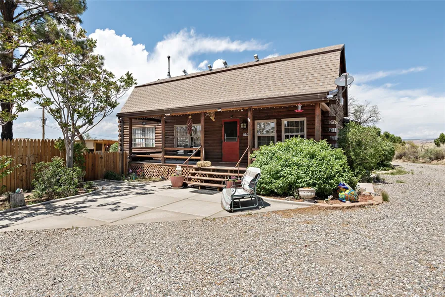 Enjoy this beautiful 5-bedroom full log home located in the Espanola Valley on 3 acres with direct access to thousands of acres of BLM land to hunt, atv ride, target shoot, camping, hiking, horseback riding, and, and, and. Masters Suit with a bathroom is upstairs with 3 more bedrooms and an additional bathroom. One bedroom is downstairs which is accessible also through a separate entry door (Back Porch). The kitchen has all stainless-steel appliances with the dishwasher installed new in March 2023. Whole house water filtration system just added to the private well, which was rebuilt in 2020. Above ground pool added in 2022, washer and dryer new 2022. The 30×40 shop/garage can be heated with a big wood stove. The shop has 240V power and a 2 post auto lift (new in 2022). There is also a 20×30 shed with a tack room and more storage and a 10×20 shed. Also a horse corral with 2 shelter buildings for livestock and an additional shed to store your hay. Come and watch the sunrise and the sunset from the front porch. Motivated Seller offers a buyers incentive pay of $8000 at closing to do some TLC.