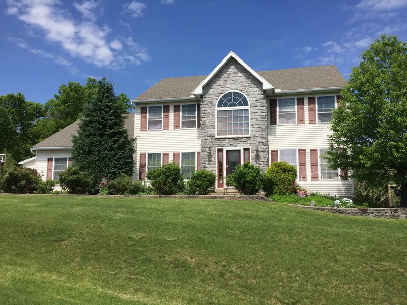 Quiet country setting in a convenient small upscale subdivision. Modern two story 4 bedroom 3.5 bath house on a large almost 3 acre lot with wooded area great for picnics and privacy that backs up to open farm fields. Entire backyard is fenced for pets and security. Bright inviting two story foyer. Open floor plan from living room to kitchen. Kitchen has 36 handle cabinets with breakfast bar area. Living room has warm and inviting gas fireplace. Master bedroom with private bathroom, sitting area and walking closet. Additional living space (1080 sq ft) in the finished walkout basement, with full bathroom. Wonderful area to hangout, entertain and relax. In addition to all the other amenities this house has a 20x40 oversized 2 car detached garage for all of your toys. Great building for workshop with rear garage door exit and electric. Also include in sale is a whole house generator which a...