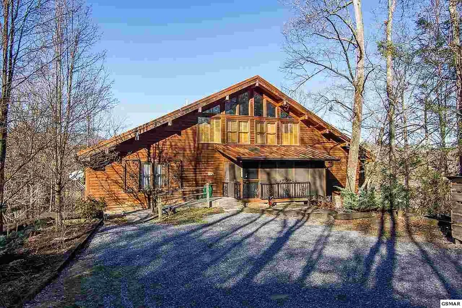 One of the most spacious cabins around, with large bedrooms and plenty of "common areas" for big families or groups to enjoy-- settled in on a private 3-acre compound (including two lots) in a guarded/gated community. Three king bedrooms with en-suite baths, plus a bonus loft area with attached bath, and bath in rec room. Soaring windows bring in the light and view on the main level, with huge stone wood burning fireplace. Two levels of level parking for many vehicles, PLUS a garage for storage or a special auto. HUGE kitchen with tons of cabinets and storage, large bar area and eat-in table. Downstairs this cabin boasts another full kitchen with gas stove, full sized laundry room, large recreation room with pool table, large screen TV, game tables and wet bar. Additional bedroom with ensuite bath. Cabin is wheelchair accessible. Located on wide paved road close to the entrance/guard shack. Doing great on rental, loved for many years by owners family. Listing Agents are related parties to owner.